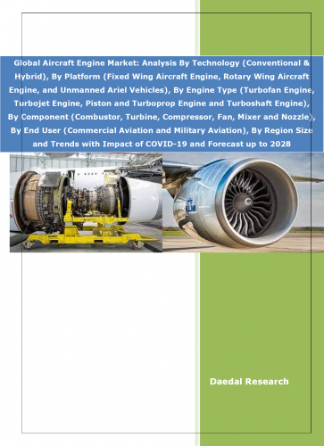 The report titled “Global Aircraft Engine Market: Analysis By Technology (Conventional & Hybrid), By Platform (Fixed Wing Aircraft Engine, Rotary Wing Aircraft Engine, and Unmanned Ariel Vehicles), By Engine Type (Turbofan Engine, Turbojet Engine, Piston and Turboprop Engine and Turboshaft Engine), By Component (Combustor, Turbine, Compressor, Fan, Mixer and Nozzle), By End User (Commercial Aviation and Military Aviation), By Region Size and Trends with Impact of COVID-19 and Forecast up to 2028”, includes: