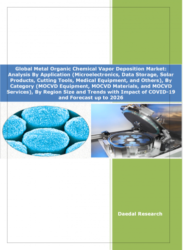 The report titled “Global Metal Organic Chemical Vapor Deposition Market: Analysis By Application (Microelectronics, Data Storage, Solar Products, Cutting Tools, Medical Equipment, and Others), By Category (MOCVD Equipment, MOCVD Materials, and MOCVD Services), By Region Size and Trends with Impact of COVID-19 and Forecast up to 2026”, includes: