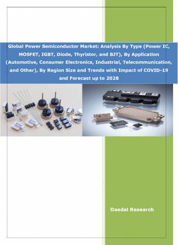 The report titled “Global Power Semiconductor Market: Analysis By Type (Power IC, MOSFET, IGBT, Diode, Thyristor, and BJT), By Application (Automotive, Consumer Electronics, Industrial, Telecommunication, and Other), By Region Size and Trends with Impact of COVID-19 and Forecast up to 2028”, includes :