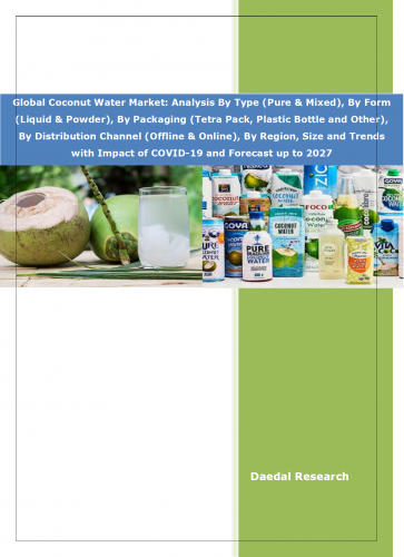 The report titled “Global Coconut Water Market: Analysis By Type (Pure & Mixed), By Form (Liquid & Powder), By Packaging (Tetra Pack, Plastic Bottle and Other), By Distribution Channel (Offline & Online), By Region, Size and Trends with Impact of COVID-19 and Forecast up to 2027”, includes:
