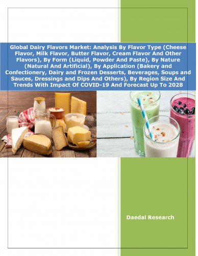 Global Dairy Flavors Market: Analysis By Flavor Type (Cheese Flavor, Milk Flavor, Butter Flavor, Cream Flavor And Other Flavors), By Form (Liquid, Powder And Paste), By Nature (Natural And Artificial), By Application (Bakery and Confectionery, Dairy and Frozen Desserts, Beverages, Soups and Sauces, Dressings and Dips And Others), By Region Size And Trends With Impact Of COVID-19 And Forecast Up To 2028