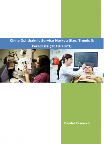 China Ophthalmic Service Market is expected to increase at high growth rates during the forecasted period (2019-2023). The China ophthalmic service market is supported by various growth drivers, such as growing ageing population, increasing purchasing power, growing eye diseases prevalence, etc. the market faces certain challenges, such as, high cost of surgeries and ophthalmic surgical instruments, lack of ophthalmologists, etc. few new market trends are also provided such as, rapid consolidation between medium and large players, government support , etc.