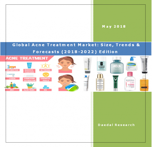 The report entitled “Global Acne Treatment Market: Size, Trends & Forecasts (2018-2022) Edition”, provides an analysis of the global acne treatment market with detailed analysis of market sizing and growth. The analysis includes market size in terms of value, market share by segments and by region. The report also provides an overview of global dermatology market as well.