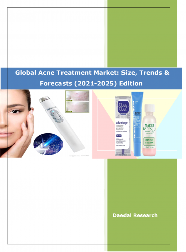 The report entitled “Global Acne Treatment Market: Size, Trends & Forecasts (2021-2025 Edition)”, provides an analysis of the global Acne treatment market with detailed analysis of market sizing and growth. The analysis includes market size in terms of value, market share by segments and by region. The report also provides an overview of global dermatology market as well.
