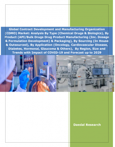 Global Contract Development and Manufacturing Organization (CDMO) Market: Analysis By Type (Chemical Drugs & Biologics), By Product (API/Bulk Drugs Drug Product Manufacturing (Inc. Dosage & Formulation Development) & Packaging), By Sourcing (In House & Outsourced), By Application (Oncology, Cardiovascular Disease, Diabetes, Hormonal, Glaucoma & Others), By Region, Size and Trends with Impact of COVID-19 and Forecast up to 2029