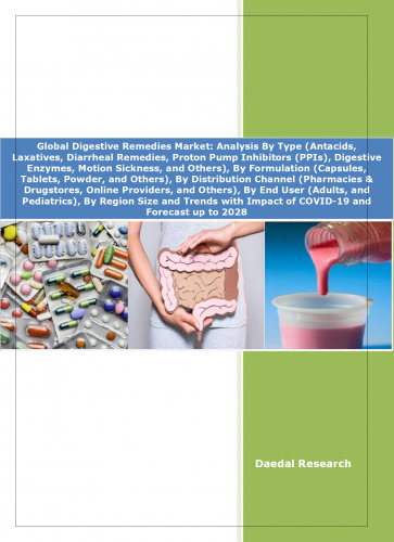 The report titled “Global Digestive Remedies Market: Analysis By Type (Antacids, Laxatives, Diarrheal Remedies, Proton Pump Inhibitors (PPIs), Digestive Enzymes, Motion Sickness, and Others), By Formulation (Capsules, Tablets, Powder, and Others), By Distribution Channel (Pharmacies & Drugstores, Online Providers, and Others), By End User (Adults, and Pediatrics), By Region Size and Trends with Impact of COVID-19 and Forecast up to 2028”, includes: