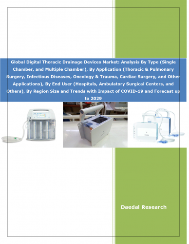 Impact Analysis of COVID-19 and Way Forward:COVID-19 brought in many changes in the world in terms of reduced productivity, loss of life, business closures, closing down of factories and organizations, and shift to an online mode of work. The growth of global digital thoracic drainage devices market was positively impacted during the period 2019-2020, as hospitals witnessed a surge in patients with respiratory issues due to COVID-19, with respiratory complications like pneumothorax (collapsed lung) and pleural effusion (fluid build-up around the lungs), both requiring chest drainage procedures, increasing the demand for digital chest drainage devices, including digital thoracic drainage devices. In addition, digital thoracic drainage systems offered added advantages in infection control compared to traditional water seal chest drains, as the filtration systems of these systems could potentially block virus-containing aerosols generated during drainage, reducing the risk of healthcare workers contracting COVID-19.