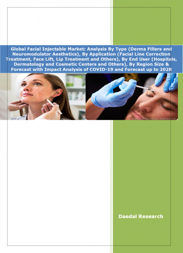 The report titled “Global Facial Injectable Market: Analysis By Type (Derma Fillers and Neuromodulator Aesthetics), By Application (Facial Line Correction Treatment, Face Lift, Lip Treatment and Others), By End User (Hospitals, Dermatology and Cosmetic Centers and Others), By Region Size & Forecast with Impact Analysis of COVID-19 and Forecast up to 2028”, includes: