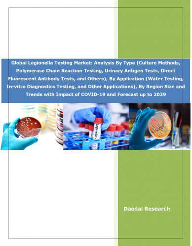 Global Legionella Testing Market: Analysis By Type (Culture Methods, Polymerase Chain Reaction Testing, Urinary Antigen Tests, Direct Fluorescent Antibody Tests, and Others), By Application (Water Testing, In-vitro Diagnostics Testing, and Other Applications), By Region Size and Trends with Impact of COVID-19 and Forecast up to 2029
