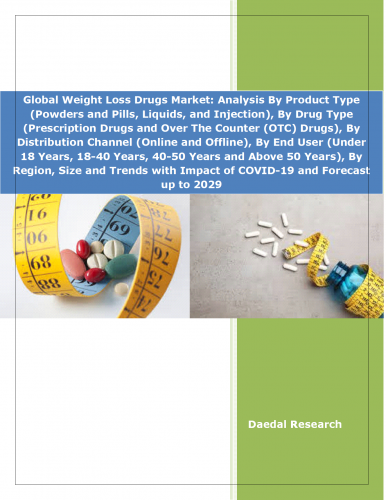 Global Weight Loss Drugs Market: Analysis By Product Type (Powders and Pills, Liquids, and Injection), By Drug Type (Prescription Drugs and Over The Counter (OTC) Drugs), By Distribution Channel (Online and Offline), By End User (Under 18 Years, 18-40 Years, 40-50 Years and Above 50 Years), By Region, Size and Trends with Impact of COVID-19 and Forecast up to 2029