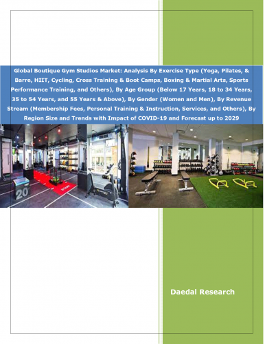 Global Boutique Gym Studios Market: Analysis By Exercise Type (Yoga, Pilates, & Barre, HIIT, Cycling, Cross Training & Boot Camps, Boxing & Martial Arts, Sports Performance Training, and Others), By Age Group (Below 17 Years, 18 to 34 Years, 35 to 54 Years, and 55 Years & Above), By Gender (Women and Men), By Revenue Stream (Membership Fees, Personal Training & Instruction, Services, and Others), By Region Size and Trends with Impact of COVID-19 and Forecast up to 2029