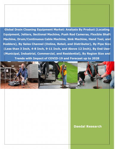 Global Drain Cleaning Equipment Market: Analysis By Product (Locating Equipment, Jetters, Sectional Machine, Push Rod Cameras, Flexible Shaft Machine, Drum/Continuous Cable Machine, Sink Machine, Hand Tool, and Rodders), By Sales Channel (Online, Retail, and Distributor), By Pipe Size (Less than 3 Inch, 4-8 Inch, 9-11 Inch, and Above 12 Inch), By End User (Municipal, Industrial, Commercial, and Residential), By Region Size and Trends with Impact of COVID-19 and Forecast up to 2028